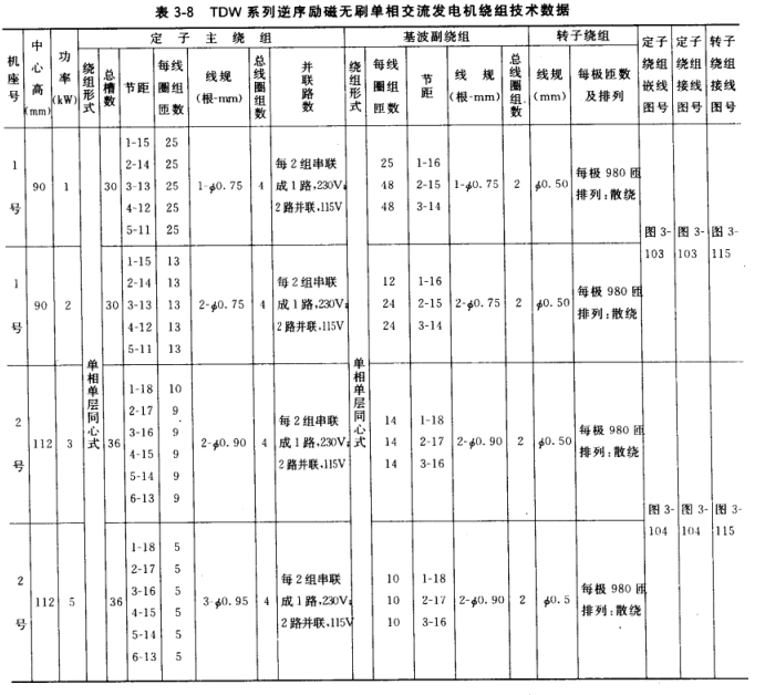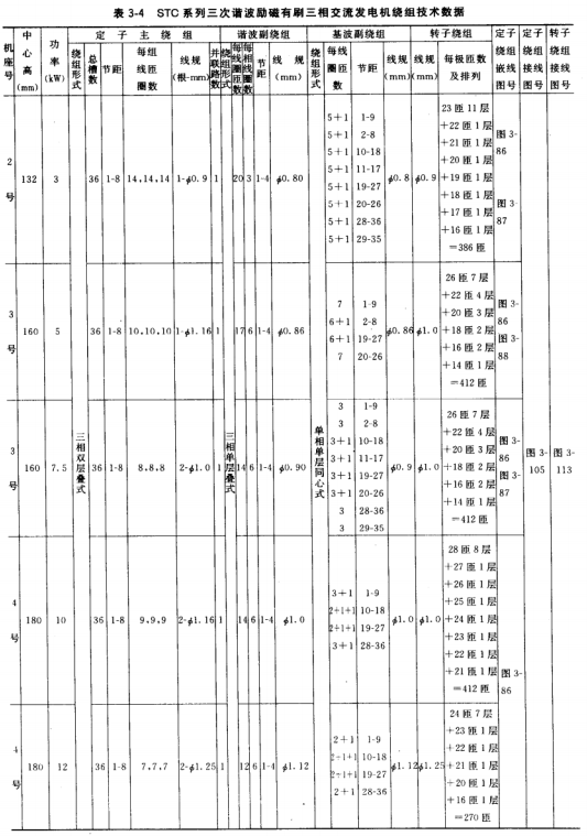 (1)繞組線規。小功率單、三相交流發電機轉子繞組一般采用漆包圓銅線,中等功率發電機一般采用漆包扁銅線。修理時根據交流發電機的型號、規格,從表3-3?表3-8中査找或采用實測法確定線規。