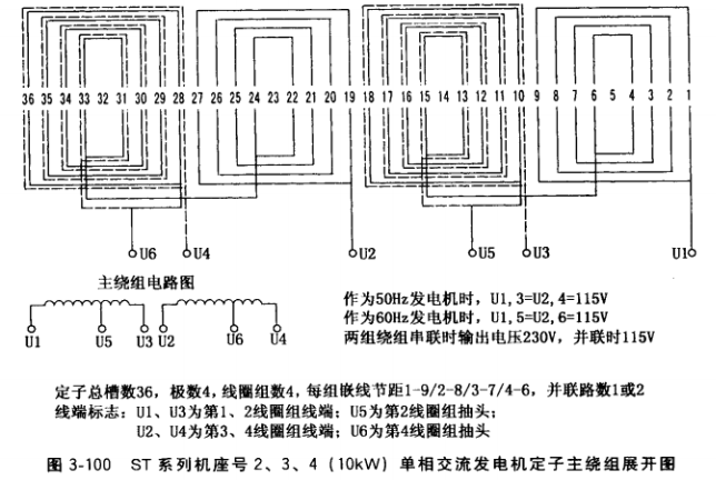 單、三相交流發電機隱極式轉子繞組嵌線:單、三相交流發電機隱極式轉子繞組也是單層同心式繞組,嵌線順序和方法同單相交流發電機同心式定子繞組。