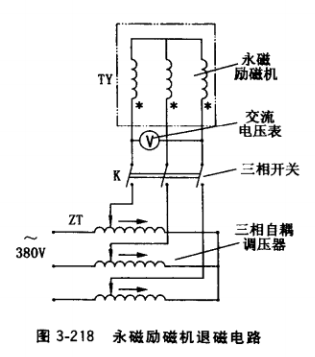 (2)永磁勵磁機退磁。當(dāng)永磁勵磁機運行時電壓 太高或充磁時磁通最過多使永磁機電壓太高時,必須 實施退磁使電壓符合要求。