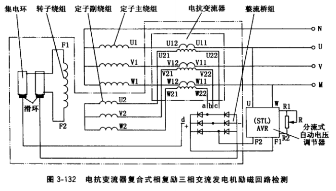 3.電抗移相式或電抗變流復合式相復勵三相交流發電機不能發電