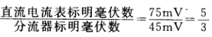 量程較小的直流電流表(如10A及以下)一般為直讀儀表,表上直接讀出電流值。但量程較大的直流電流表(如10A以上儀表電路并聯(lián)一個(gè)分流器(數(shù)值已知的小電阻,大部分被測電流通過它)。大量程直流電流表實(shí)質(zhì)上是毫伏表,被測電流在分流器上產(chǎn)生毫伏級(jí)電壓,然后將毫伏數(shù)送至毫伏表測量,并以電流值進(jìn)行刻度。當(dāng)電流表上標(biāo)明的毫伏值與 分流器上標(biāo)明的毫伏值一致時(shí),說明電流表和分流器匹配,此時(shí)可從電流表上直接讀出電流 值。若它們所標(biāo)明的毫伏值不一致,說明不匹配,此時(shí)必須對電流表的讀數(shù)進(jìn)行換算。例 如,有一只150A的直流電流表,表上標(biāo)明75mV,因買不到150A, 75mV分流器,用一只 150A、45mV的分流器代替。本來當(dāng)通過150A電流時(shí),在分流器上應(yīng)產(chǎn)生75mV電壓,電 流表的指針應(yīng)指在150A的刻度上。但用了 150A、45mV分流器后,當(dāng)分流器通過150A電 流吋,只產(chǎn)生45mV電壓,電流表的指針只能指在90A的刻度上,比原來少了 60A,產(chǎn)生 了讀數(shù)誤差。為確保讀數(shù)正確,必須乘一個(gè)系數(shù)(分流比修正系數(shù))K, K =